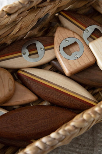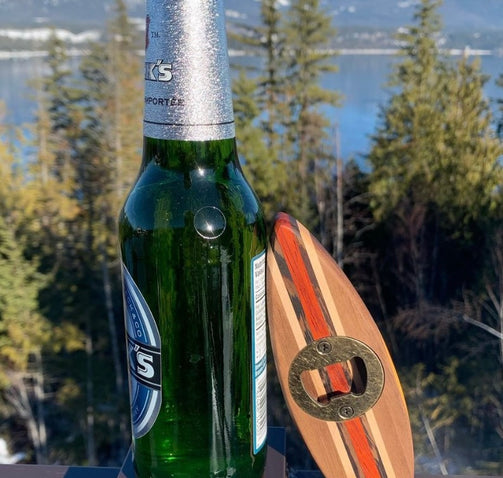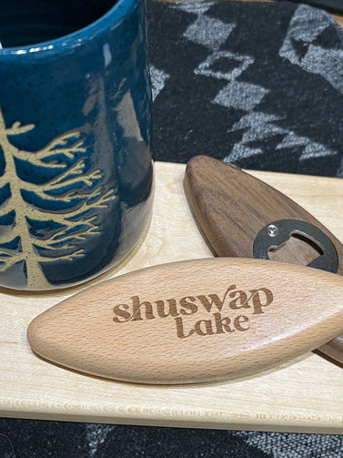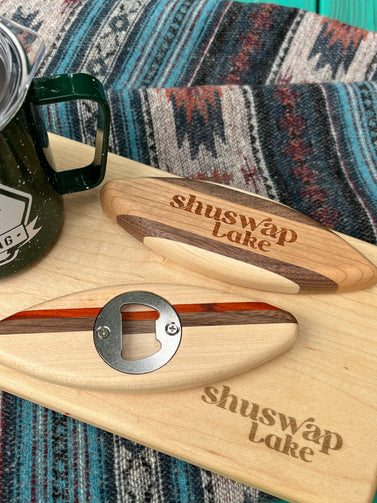 Locally crafted right here in Salmon Arm, Wood + Stainless Steel Bottle opener - Plain + Shuswap Logo