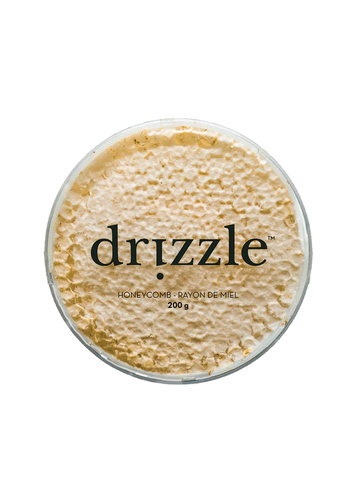 Drizzle Honeycomb is a rare and sweet indulgence. The light wax combs are 100% edible and filled to bursting with fresh, delicious honey that you can eat with a spoon. Honeycomb is the rawest form of Drizzle Honey and is a luxurious topping or pairing for cheese, fruit, meat, and bread. An essential for any charcuterie board!