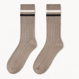 The Duval crew sock features classic cable knit texture with a sporty stripe detail for a timeless, laid-back look. Crafted in a midweight blend, it offers warmth and structure without bulk.
